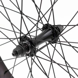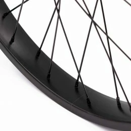 Elle est montée avec un moyeu aluminium 100% roulements scellé ainsi qu’une jante double parois de 40mm de large. Un combo rigide et robuste à un prix super attractif !